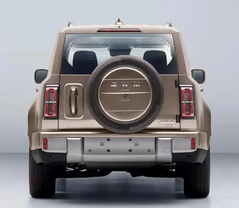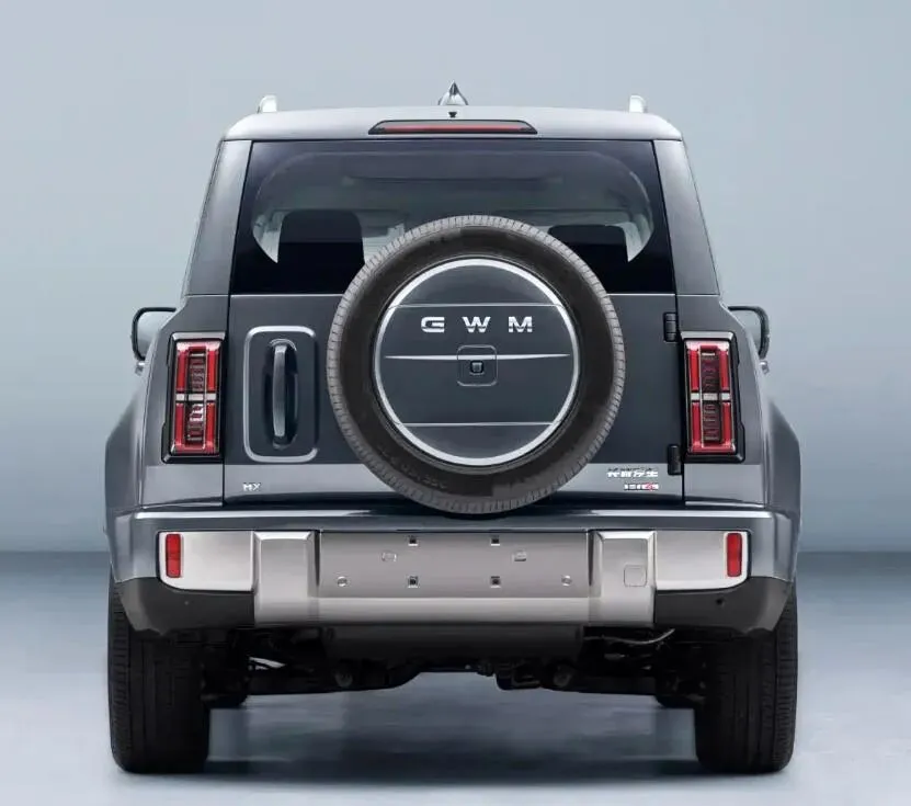 车身侧面线条平直舒展,凌厉腰线搭配隆起的轮眉设计,进一步强化了硬派越野风格。车尾采用纵向布局尾灯,视觉层次鲜明;同时配备侧向尾门与外挂式备胎,越野属性拉满。车身尺寸方面,长宽高分别为 5138(5299)/2050/1970mm,轴距3000mm,空间表现宽裕。