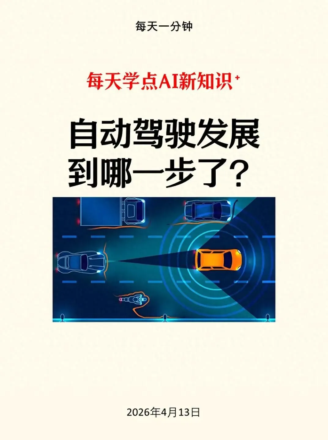 L3:系统开车,但你要待命 → 特定路段(如高速)系统全权开,你可短暂摸鱼,但叫你接管必须马上接。