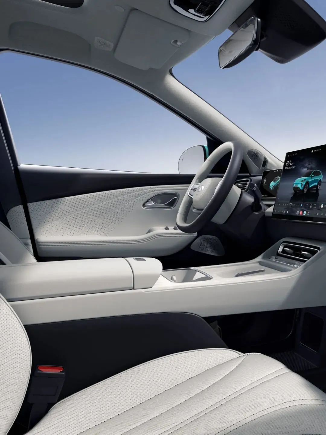 高配车型可选装升级猎鹰700辅助驾驶,包括车顶激光雷达+地平线征程6P辅助驾驶芯片以及智驾小蓝灯等,共27颗传感器,算力560TOPS,支持城市NOA、高速NOA双场景领航和全场景自动泊车等。内饰采用灵犀智能座舱(内置3nm芯片,中控屏采用风云UI 2.0,可支持灵犀智能体、全场景语音助手、全品牌智能手机互联、魅力场景模式和无麦K歌等),环抱式中控台设计搭配双辐式多功能方向盘、液晶仪表以及悬浮式中控屏。提供17.3英寸二排吸顶屏、256色律动流莹氛围灯2㎡全景天幕+电动遮阳帘、以及23扬声器AI伯牙之音音响系统,采用7.1.4全景声式布局,最大功率1080W。提供暖霞金橙、水墨霁蓝、极光紫境3种主题。