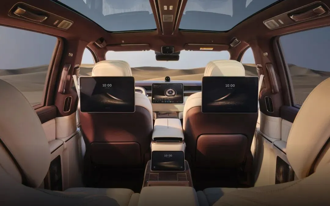 - • 移动会议室与茶室:座舱首发阵列式LC智能隐私调光车窗,配合智能行政中岛、双16英寸行政屏及专属磁吸茶台,让车内既能开视频会议,也能品茶约会。