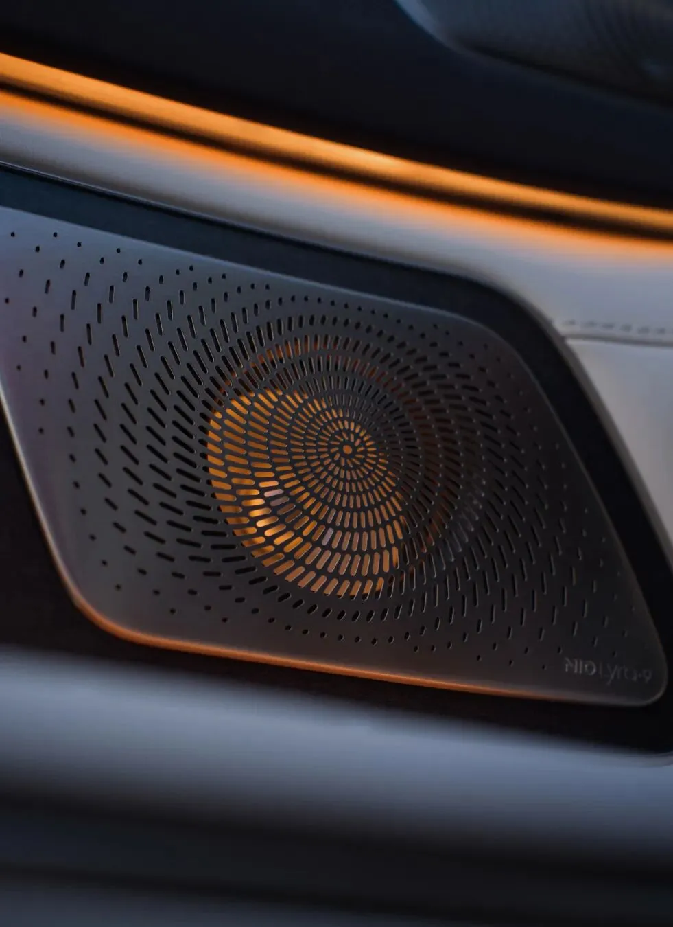 新车全系标配102kWh电池包,基于全域900V高压架构打造,支持5C超快充且兼容蔚来换电网络,3分钟即可满电出发。为了极致的听觉享受,ES9搭载了九霄天琴沉浸声系统,扬声器数量高达47个,额定功率达3,020W,甚至首次搭载了纯钻石打造的高音单元,将座舱直接变成了移动音乐厅。