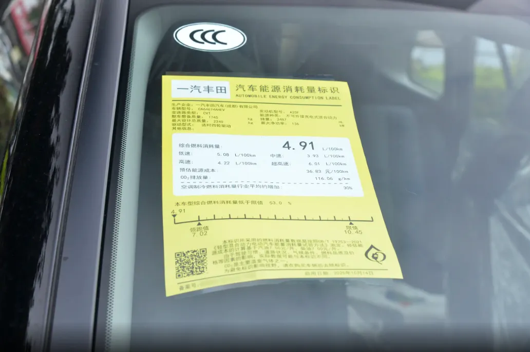 混动版一箱油能跑1200多公里,平时不用频繁去加油站,长途自驾也省心。说完省油再说省心,丰田的品控大家都知道,这台车百车故障数远低于行业平均,核心部件故障率不到0.5%,开个三五年基本不会出小毛病,而且混动版的电池,厂家给了8年/20万公里质保,完全不用操心电池衰减的问题,家用开十年都放心。