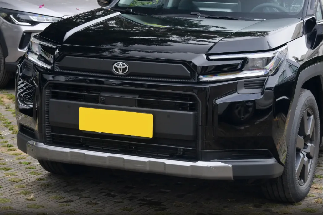 咱先说说这新款RAV4荣放的外观,跟老款那种圆乎乎、挺中庸的样子完全不一样了,现在是彻底走硬派、硬朗的路线,看着就特别结实、稳重。先说前脸整个车头特别宽特别大气。中间是一块大尺寸的熏黑蜂窝格栅,不是那种小气的设计,看着就很有力量感。两边是C形、很锐利的LED大灯,跟格栅连在一起,形成一个很有攻击性的 “X”形,眼神特别亮,白天晚上辨识度都高。底下还有银色的护板,有点小普拉多那味儿,不怒自威,家用看着踏实,出去自驾也有气场。