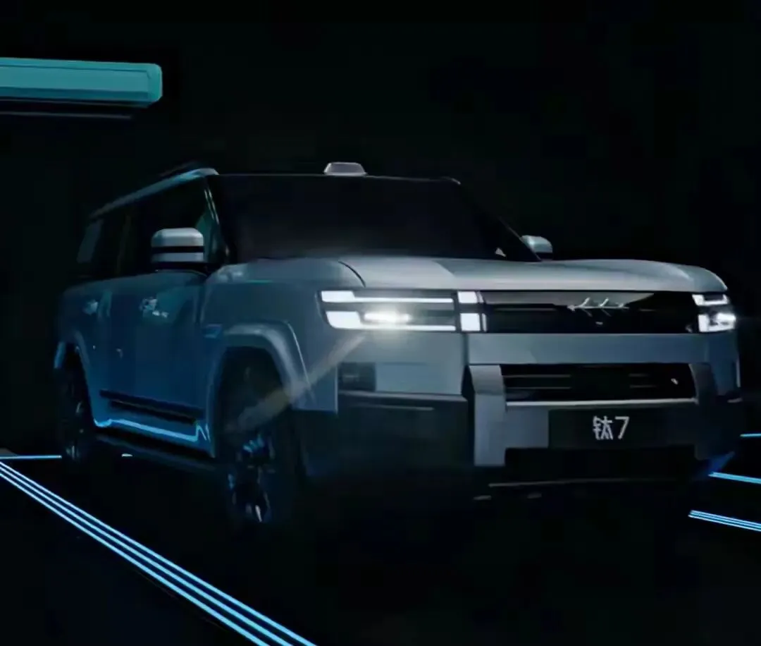 方程豹钛7 EV闪充版4月登场,依旧是大家喜欢的方盒子造型,平行线大灯+H型护板,硬朗又霸气。