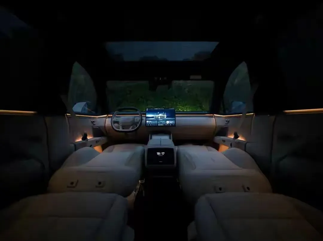 车内最夸张的是7块大屏联动,科技感直接拉满,还配了车载冷暖冰箱,长途出行太舒服。