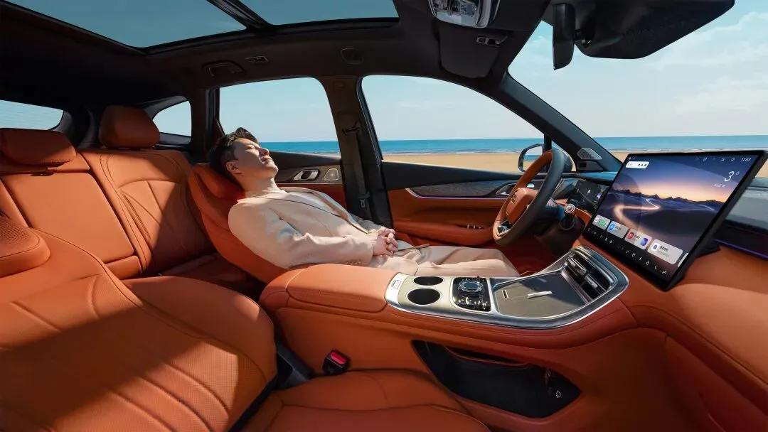 内饰用料越级,大面积生态麂皮+生态木纹饰板+水晶旋钮,触感细腻温润。十层棉花糖座椅集成三档通风、加热、行业首创浮点按摩功能,三档力度可调,长途乘坐也不累。座舱配备15.4英寸2.5K中控屏+7nm龍鹰一号芯片,搭载FlymeAuto 2智能座舱,HiEva语音大模型支持全场景连续对话,导航、控车、娱乐一句话搞定。