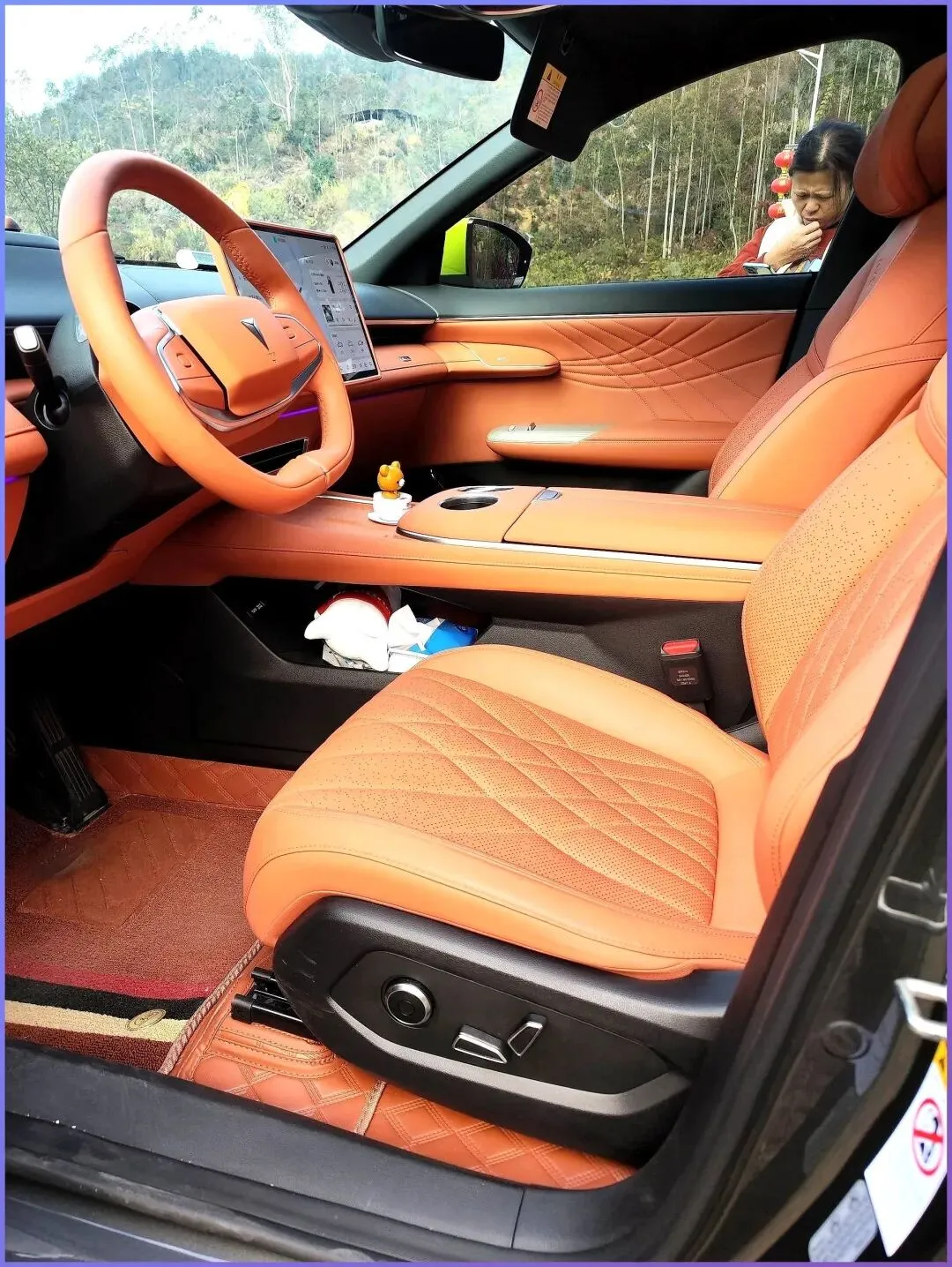 包括细节上也有软性材质包裹,营造出的层次感很高级,同时也给到了全景天窗,采光面积很大,坐在车里采光很好,尽享舒适。那它是没有 HUD 抬头显示的,这个确实稍微有点遗憾,但加 1W 元升中配也可以接受,中配版还会多个座椅加热、通风,另外就是配置升级明显,包括前排也带有隔音玻璃,整体隔音效果相对要比低配好一些。另外就是中配还有 12 扬声器音响,音效很好,在同级里实力很强。就是设计不合理的地方也有,储物空间稍微小了一点点,但整体来说东西很多,配置很丰富。
