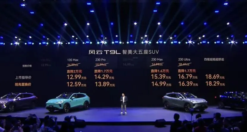 风云T9L这车真来了,4月13日上市,起售价12.99万。不是丐版试探,是顶配智驾、四驱混动、CDC悬架全给齐了。我蹲在展车旁看了半天,销售没吹牛,参数全贴在车尾铭牌上,连热效率45.79%都印着。