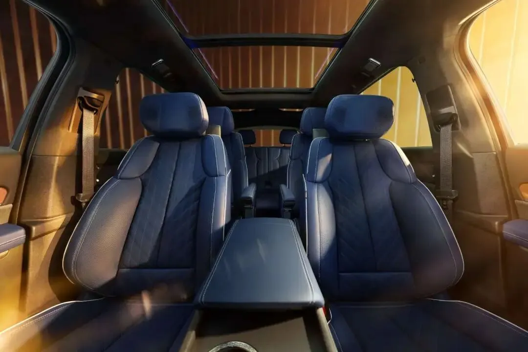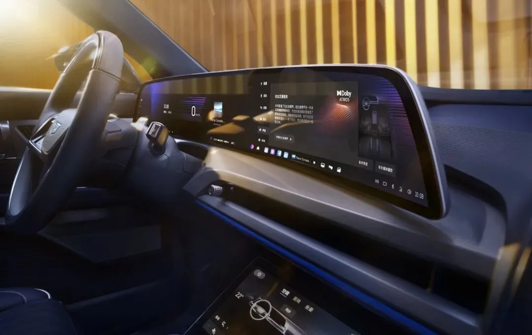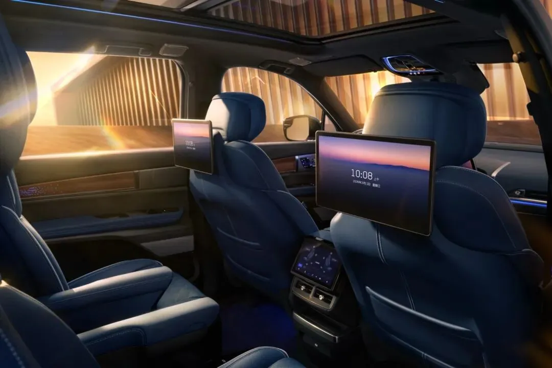 同时,第二排配置双12.9英寸后排娱乐屏,屏幕可以独立控制影音、空调和座椅;前排采用33英寸9K大屏,和70英寸抬头显示系统。