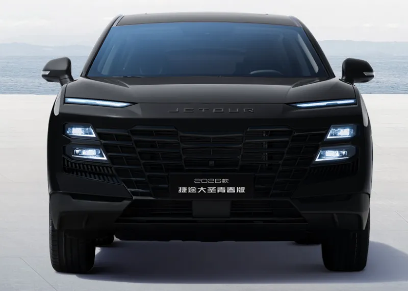 为什么形容26款捷途大圣青春版属于大厂范?你看它的前脸就能得到答案。如果选择的是黑色的车型,整个前脸其实是富有攻击性的,不仅匹配了分体样式的大灯,而且倒梯样式的熏黑中网有着不错的力量感。此外,厂家还刻意增强了车头引擎盖上的筋线,看起来力量十足。