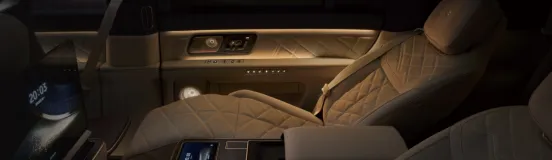 ES9的飞航行政座椅采用蔚来自研高端座椅平台。二排飞航零重力行政座椅,长达2.3米的连贯椅面配合覆盖全身42点全维深层按摩系统,包括行业首创20点机械足底按摩,带来极致身心放松。座舱全球首发阵列式LC智能隐私调光车窗,拥有行业最快变色速度,原创的智能行政中岛配合顶级双16英寸专属行政屏、高清视频会议系统及专属磁吸茶台,让商务体验高效而得体。