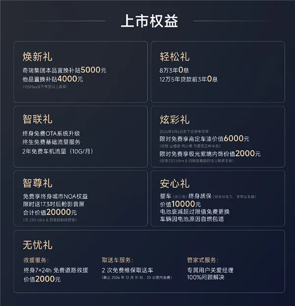辅助驾驶层面,入门版载猎鹰200智能辅助驾驶系统,其它版本则会配备猎鹰500智能辅助驾驶系统;高配两款车型可花钱选装升级猎鹰700辅助驾驶,包括车顶激光雷达+地平线征程6P辅助驾驶芯片以及智驾小蓝灯等,共27颗传感器,算力560TOPS,支持城市NOA、高速NOA双场景领航和全场景自动泊车等。