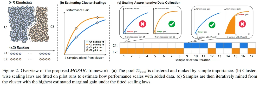相比业内目前一次次手动尝试数据配比的方案,MOSAIC 最大的贡献是将这个过程升级为动态的、收益驱动的采样过程:
