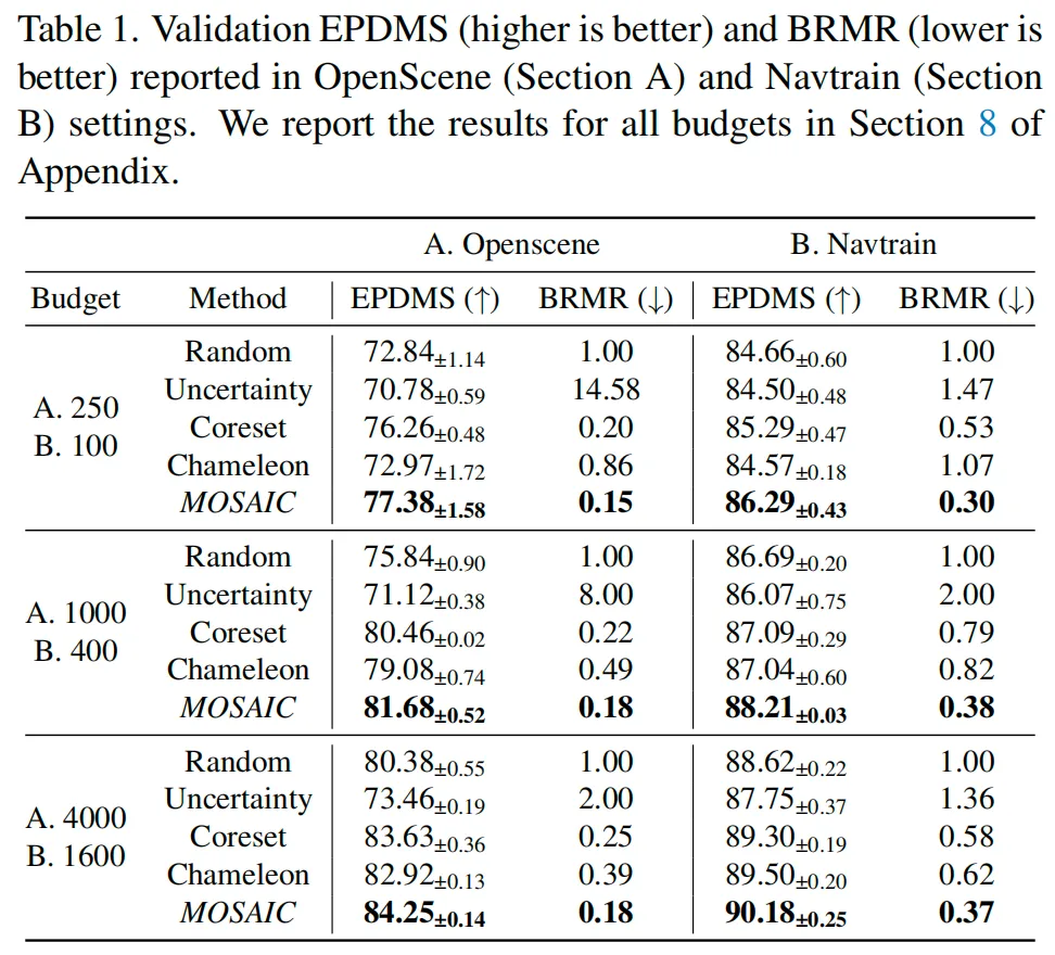 MOSAIC 使用闭环指标 EPDMS 来做,当然对于各家而言,量产上关注什么指标,可以直接进行适配。