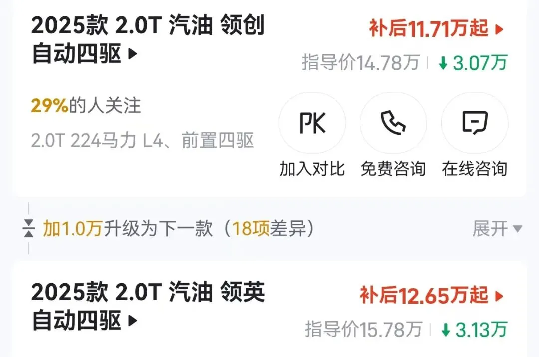 如今这款车也在广大电车冲击下迎来价格调整,幅度是真不小。