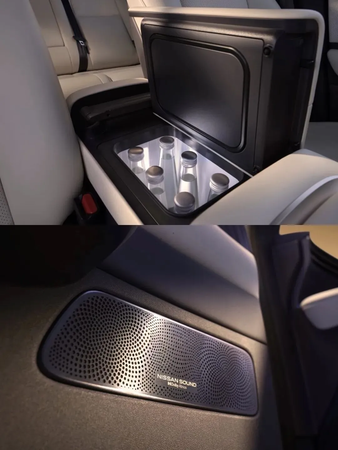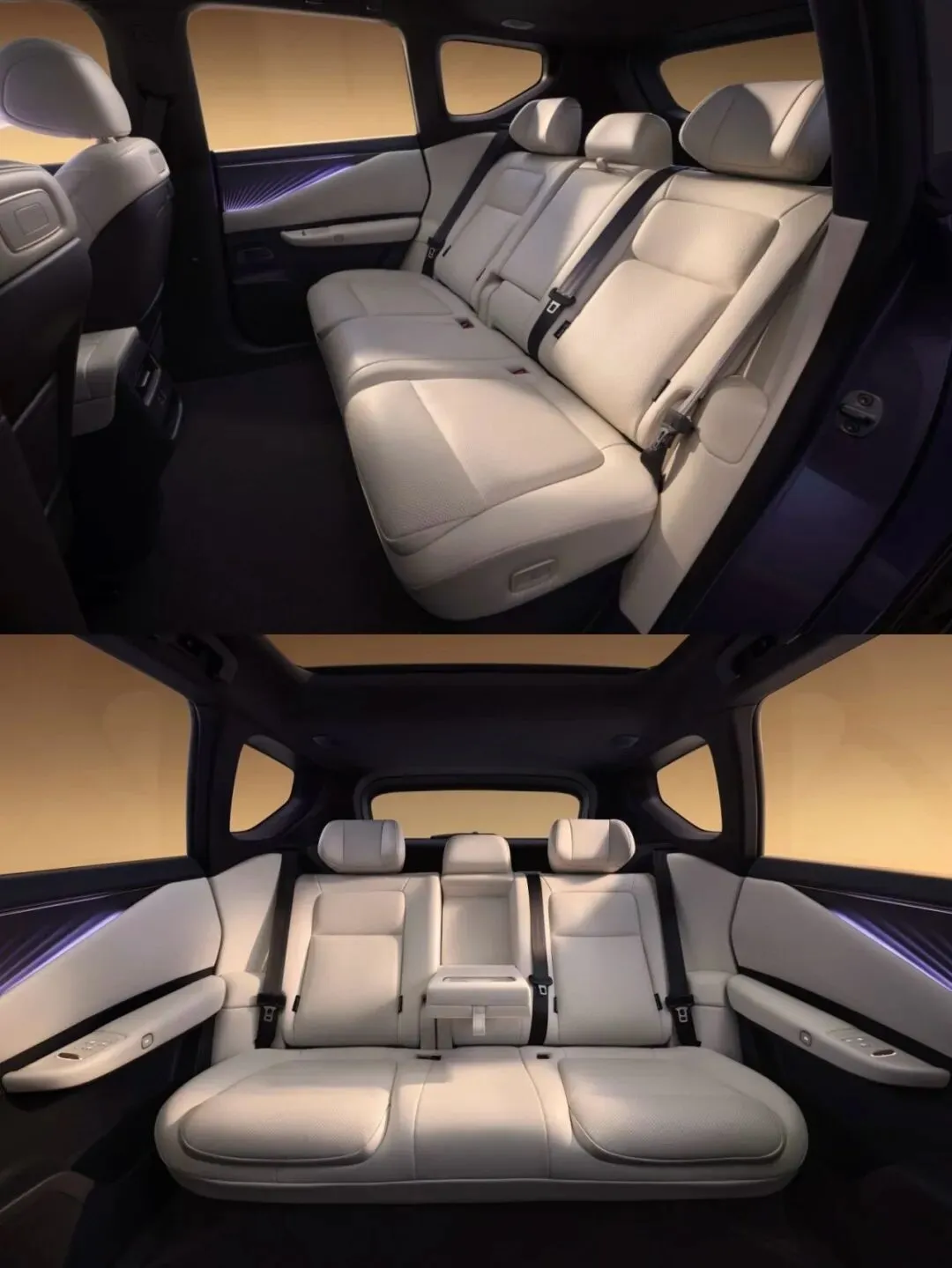 这车主打一个“全家人的C位平权”。副驾云毯座椅带25个气囊按摩,后排不仅有133度电动大躺椅,还给配了能制冰能热奶的冷暖冰箱,带娃出门太懂事了。
