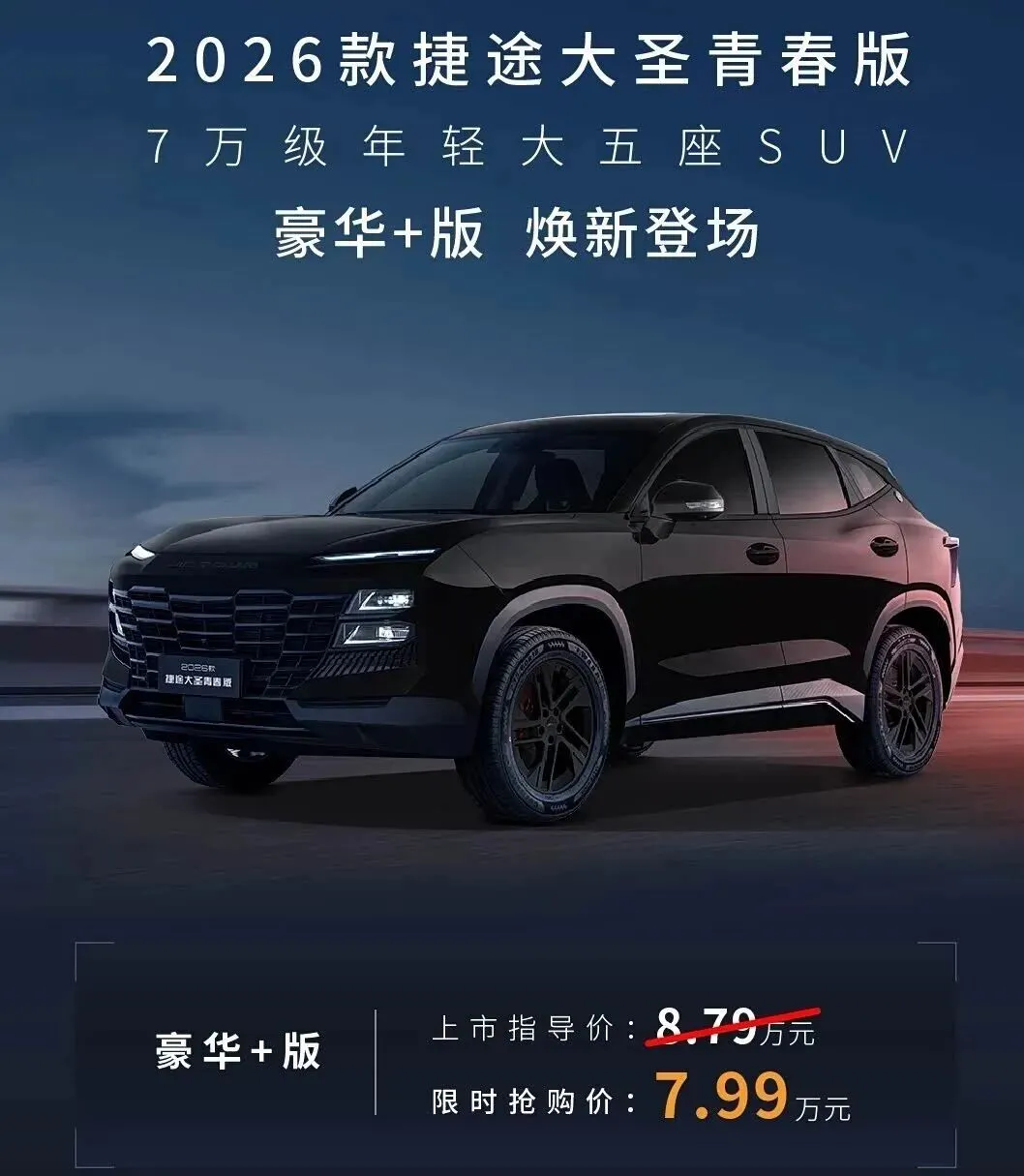 捷途大圣青春版豪华+版的上市,用一个相当具有竞争力的价格切入了 8 万元级别的 SUV 市场。限时抢购价 7.99 万元,加上 8000 元现金优惠、0 息贷款、终身质保这一套组合拳,显然是在向这个价位段的消费者传递一个信号:质量和配置,你不用二选一。