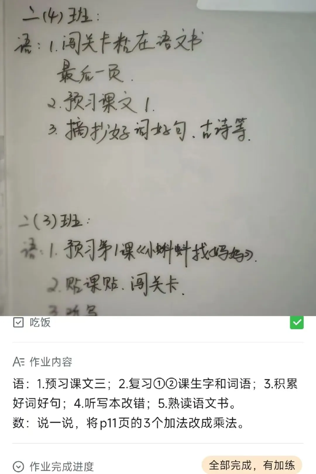 - 16:45,孩子们自觉取出作业记录本