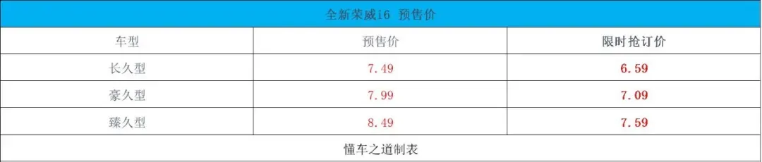 【懂车之道 产品】近日,懂车之道获悉,4月13日,上海,上汽全新荣威i6正式开启预售,共推出三款车型,分别是长久版、豪久版、臻久版,限时抢订价6.59万-7.59万元,预售价为7.49万-8.49万元。新车采用全新设计,动力上搭载1.5L发动机。下面,和大家一起来详细看看新车的产品力如何?