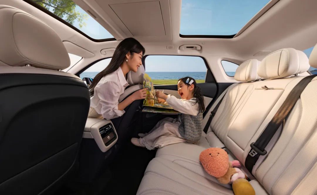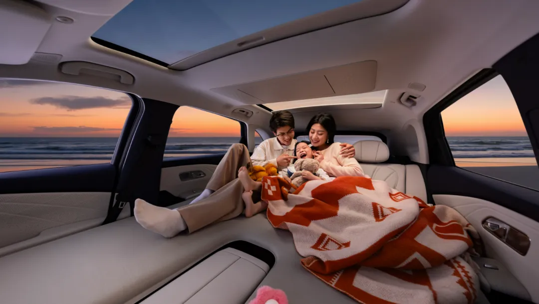 舒适配置同样越级。前排双零重力悠然座椅支持16向电动调节、3档通风加热、10点按摩,最大躺角可达180°;二排座椅同样配备115°-125°电动调节及通风加热。加上23扬声器的伯牙之音音响系统、17.3吋后舱娱乐屏、-6°至50°可调的车载冰箱,以及2㎡全景天幕带电动遮阳帘——这些配置出现在15万级车型上,确实打破了细分市场的惯例。