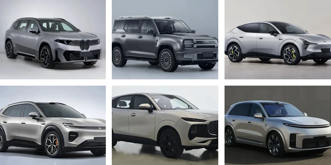 1、华晨宝马—iX3,全新科幻科技风格,宝马纯电车不再是油改电修修补补了,那标志性的“双肾”鼻子还是保留了下来。2、长城汽车—哈弗HX,长x宽x高5138x2050x1970mm,轴距3000mm,哈弗最大号车型,整体延续哈弗系列硬派越野的风格。3、小鹏汽车—MONAL03,MONA03风格SUV,跟自家G6尺寸相当。4、长安汽车—启源Q06,运动型5座SUV,插混和纯电两个版本,有又是一台年轻人的第一辆车。5、奇瑞汽车—新款瑞虎5,又来一个瑞虎5,奇瑞这有好几款瑞虎5了。6、广汽传祺—向往E8 MPV,广汽另起炉灶把向往系列推起来,后面传祺E8大概率是要退位让路了。7、理想汽车—新款L8,外观小改,半隐藏车门把手,造型还是相当给力。卖得好是有原因的,至少情感分数满分。