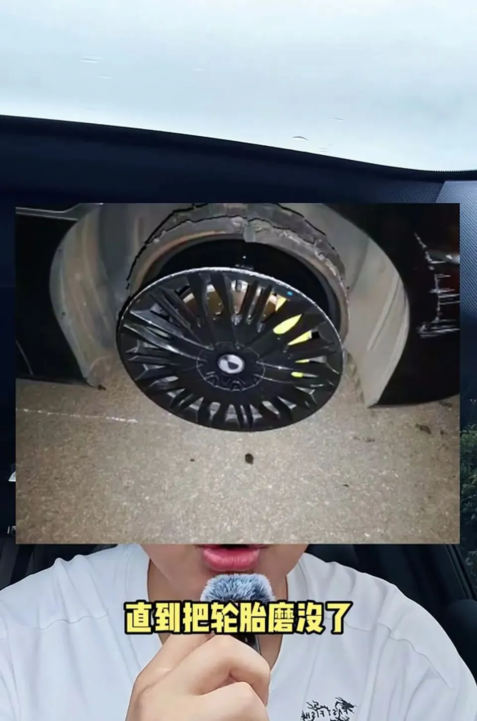 GT高速爆胎,车辆已经提醒了,但车主可能没注意异常,就一直跑,直到把轮胎磨没了才发现。这个案例被拿出来,核心就是在说明易三方技术有很强的异常工况维持能力,甚至形成了“三个轮子也能跑”的传播点。