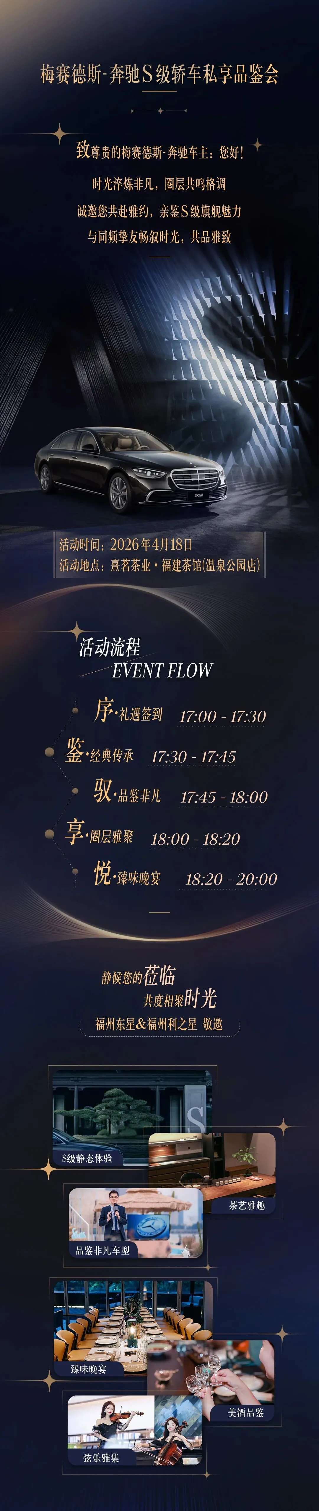 梅赛德斯-奔驰S级轿车私享品鉴会 诚邀您共赴雅约,亲鉴S级旗舰魅力