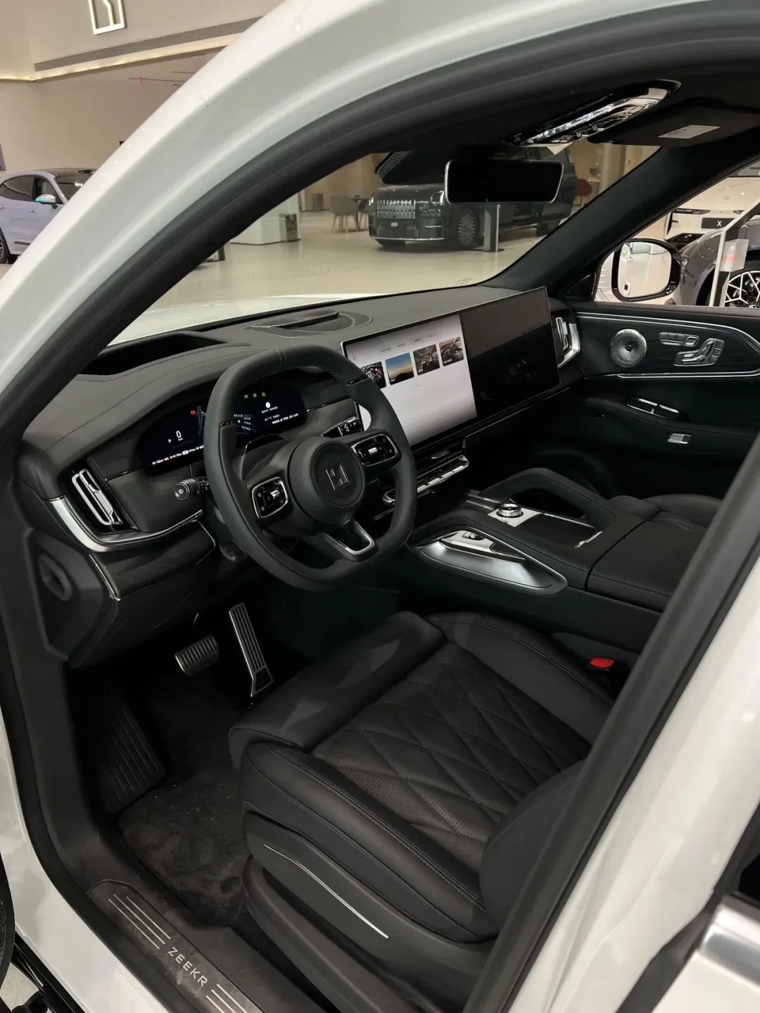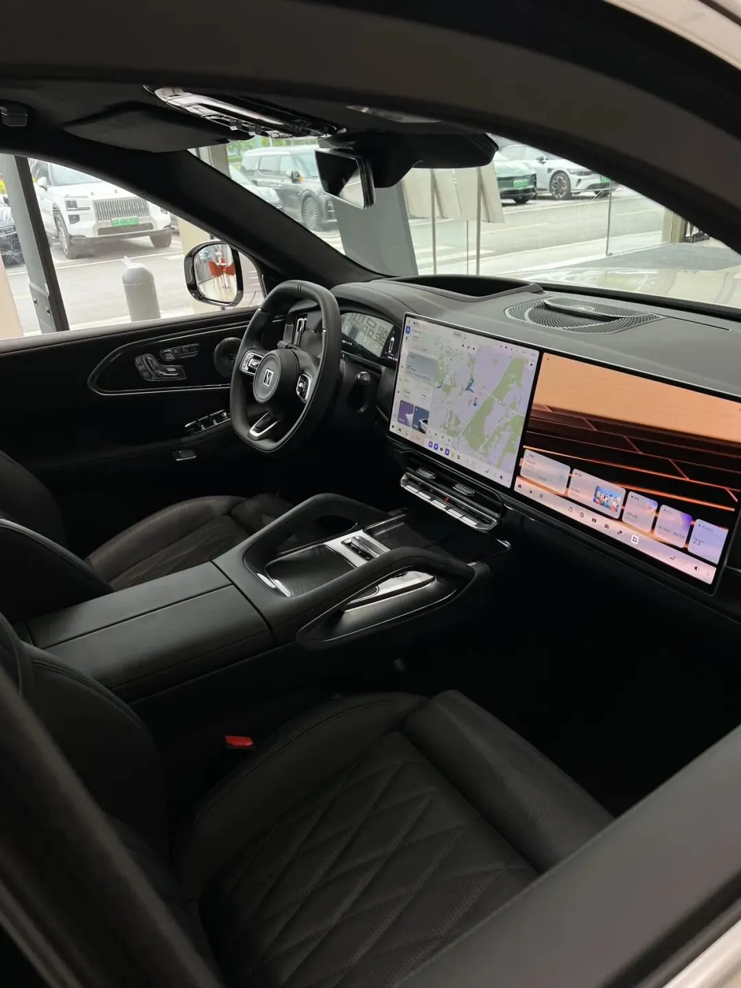 高通8295芯片,44英寸AR-HUD、16英寸Mini-LED中控屏,EVA语音助手,支持全舱自由说、眼神凝视免唤醒;全系标配座椅加热/通风/按摩,二排带遮阳帘、独立空调,曜影版配备Nappa真皮、头等舱级座椅。