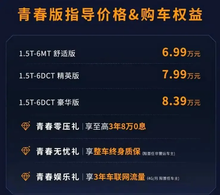 其实捷途大圣青春版本身定价就很亲民,1.5T+6MT舒适版只要6.99万元,1.5T+6DCT精英版7.99万元,豪华版8.39万元,现在新增的豪华+版在限时优惠后同样7.99万元,配置还更高,性价比直接拉满。而且上面提到的终身质保、3年流量、金融贴息,整个青春版系列都能享受,对年轻用户可以说非常照顾。