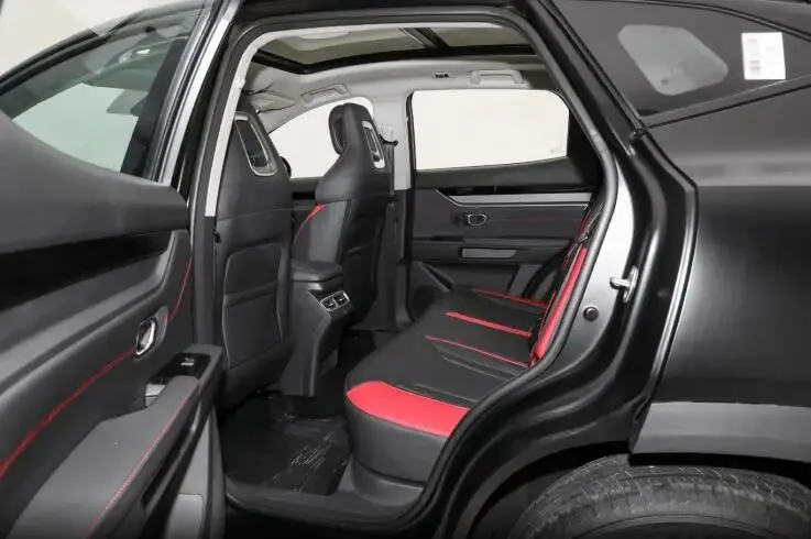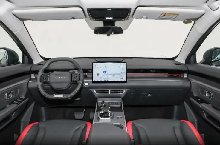外观一直是捷途大圣的拿手好戏,这款新车依旧是机甲轿跑SUV的风格,战斗感拉满。前脸采用数字化无边界格栅,搭配流光之翼分体式LED大灯,辨识度很高,白天看个性十足,晚上点亮效果更吸睛。豪华+版还有专属的哑光黑车漆,配上熏黑标识、红色运动卡钳和18英寸黑武士轮圈,不用改装就有原厂运动范儿,开在路上回头率绝对不低。