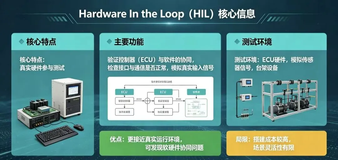 HIL(Hardware In the Loop)的核心特点是:真实硬件参与测试