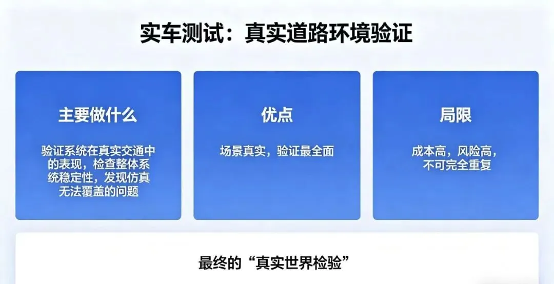 而从整体来看:自动驾驶测试的核心,不是某一种方式,而是多层验证体系的组合。