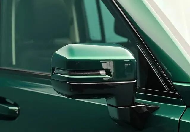 咱们先聊聊这车长得啥样。猛龙PLUS既然带个“PLUS”,那气势肯定得拉满。整车还是那种方盒子的硬汉路线,但细看你会发现它没那么糙,多了点城市SUV的精致感。前脸那个保险杠往外凸,配上方方正正的大灯组,远远一看就知道不是好惹的角色。侧面线条直来直往,轮眉也是外凸的设计,很有肌肉感,C柱那儿还特意加了银色饰板和专属徽标,显得挺高级。车屁股最有意思,侧开门加上背着的小书包(备胎),这可是正宗越野车的仪式感。虽说它骨子里是承载式车身,不像坦克的那种大梁非承载式那么极端,但样子货做得挺到位,开出去回头率绝对不低。