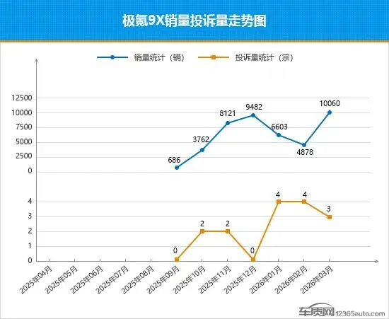 3月,极氪9X完成自我突破,月销量首次站上万辆关口,连续5个月跻身大型SUV市场销量榜前三甲。从其上市至今的销量走势来看,整体呈现“冲高-回落-反弹”的态势,展现出强劲的市场潜力。作为一款定位高端的自主品牌车型,能取得如此成绩实属难得。与销量走势有所不同的是,极氪9X的月投诉量始终保持在个位数,且在3月销量创新高的同时,投诉量反而呈现下降趋势,短期口碑表现出色。从其本月投诉销量比变化可以看到,不仅保持着较低数值,且较2月份仍有显著回落,在榜单所有车型中排名首位,表现进步明显。短期来看,极氪9X有望延续销量增长势头,持续巩固在细分市场中的领先地位。