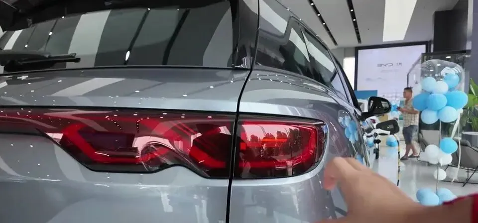 尾部用了现在最新的贯穿式尾灯设计,只不过别的车是一整条直接拉过去,它在中间又做了一个小处理。开模成本肯定高一点,但视觉层次也更丰富。