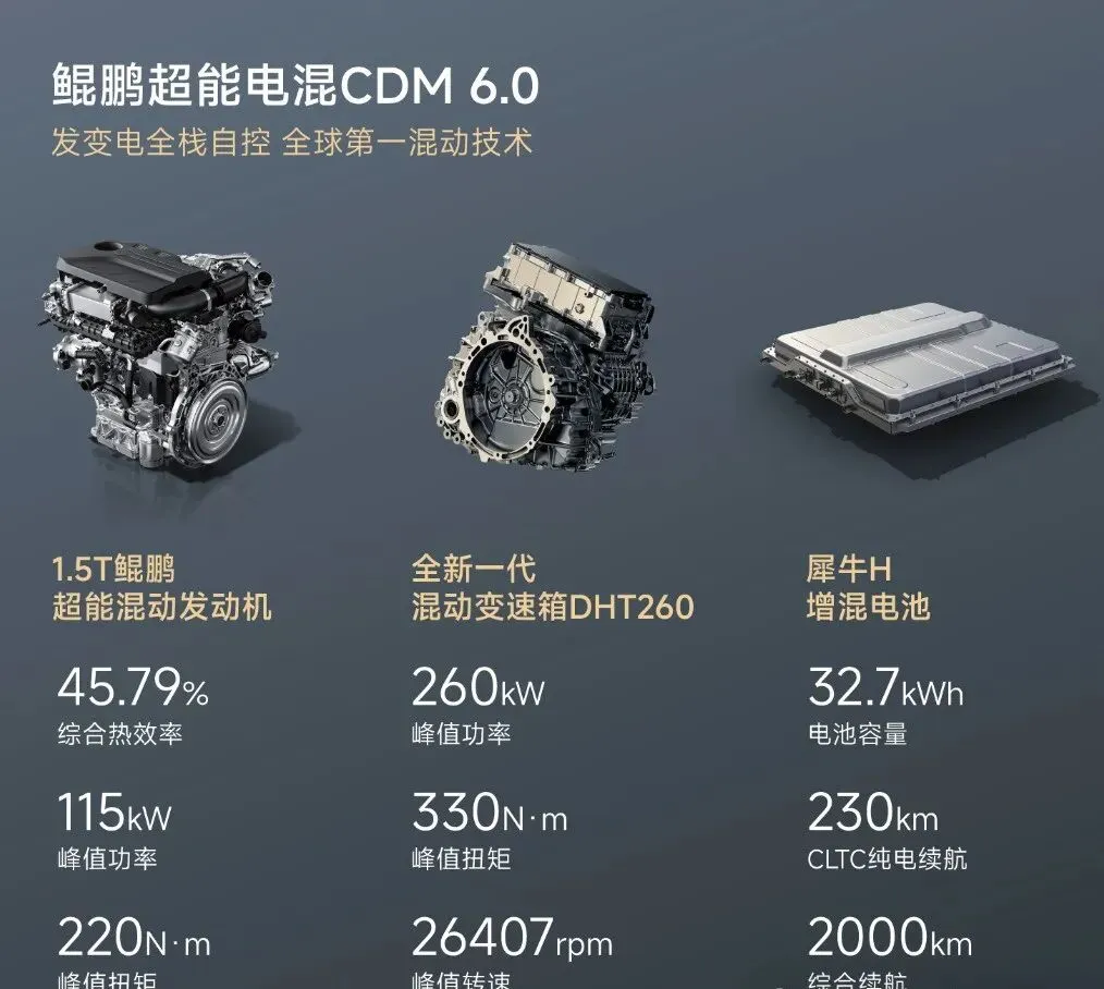 T9L搭载鲲鹏超能电混CDM 6.0系统,1.5T混动专用发动机热效率达到45.79%,拿过"中国心"十佳发动机。说人话就是:这台发动机烧油特别省,能量转化率在同级里属于顶尖水平。
