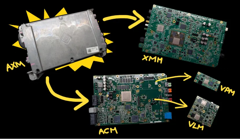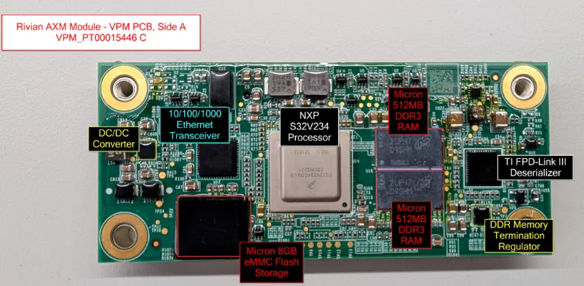 AXM是Rivian R1S / R1T车型的核心域控制器,负责驾驶辅助、媒体播放、车机显示,几乎包揽全车 ADAS + 信息娱乐 全部任务。