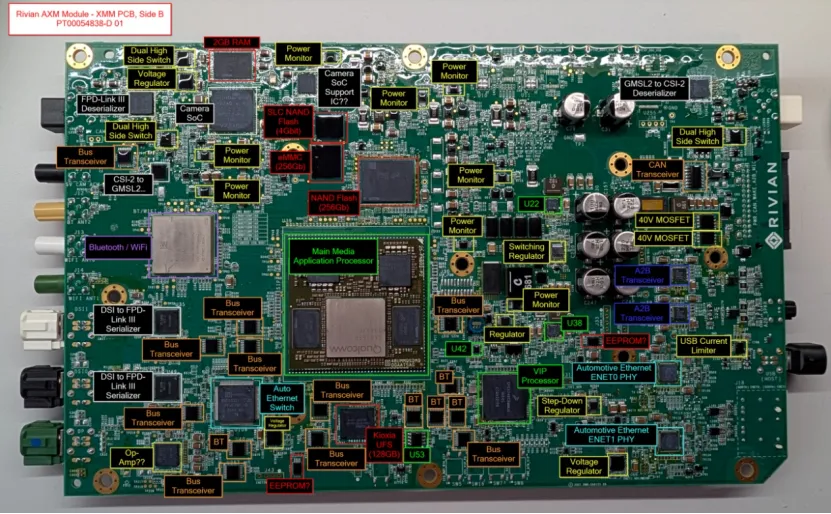 本次拆解的是第一代 AXM,即AXM 1.0。2024年及之后的新款Rivian车型已搭载AXM 2.0,其布局完全不同,XMM与ACM均经过重新设计。不久后,Rivian还将推出AXM 3.0,计划采用自研专用芯片作为主处理器!