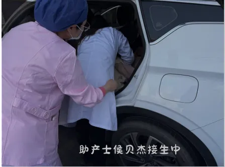 我立刻冲了出去。只见一辆白色轿车内,一位孕妇正疼得大声呻吟,身旁一个两岁左右的孩子也在哇哇大哭。一位年长的老夫人紧紧抱着产妇,不停地安抚;而产妇的丈夫站在车外,急得语无伦次。