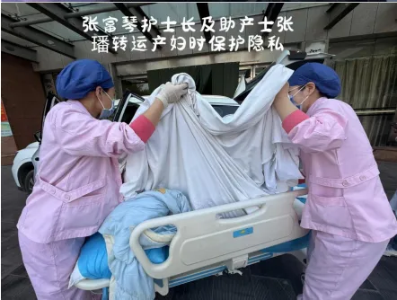 张富琴带着助产士张璠推着平车,早已经等在轿车外面。看产妇可以挪动了,医护人员就稳妥地将产妇移到平车上。