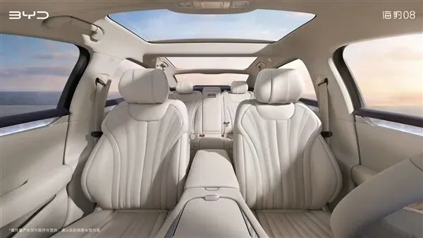 从官图看,海豹08内饰整体高级感十足,和早期比亚迪的设计比起来确实进步非常大,甚至有种脱胎换骨的感觉,值得点赞。