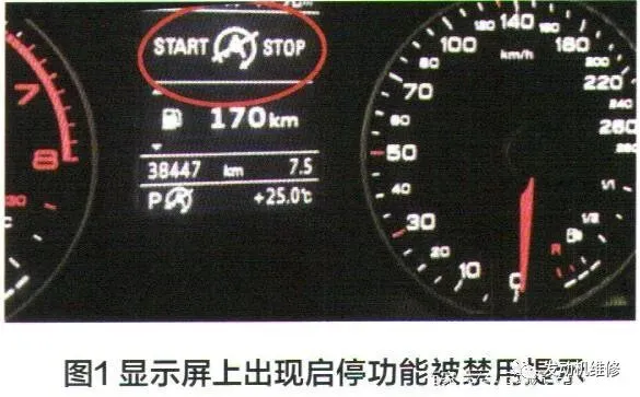 一辆2017年购买的奥迪A3轿车,带有“自动启停”功能,已经正常行驶超过60000km,自动启停功能使用情况一直正常。最近更换了蓄电池,自动启停功能不能使用,后又更换了网关J533,但仪表上仍然出现启停功能被关闭的标识(图1)。用奥迪专用电脑VS6150D检测仪没有读取到电控系统的任何故障记录。请问此故障该如何处理?