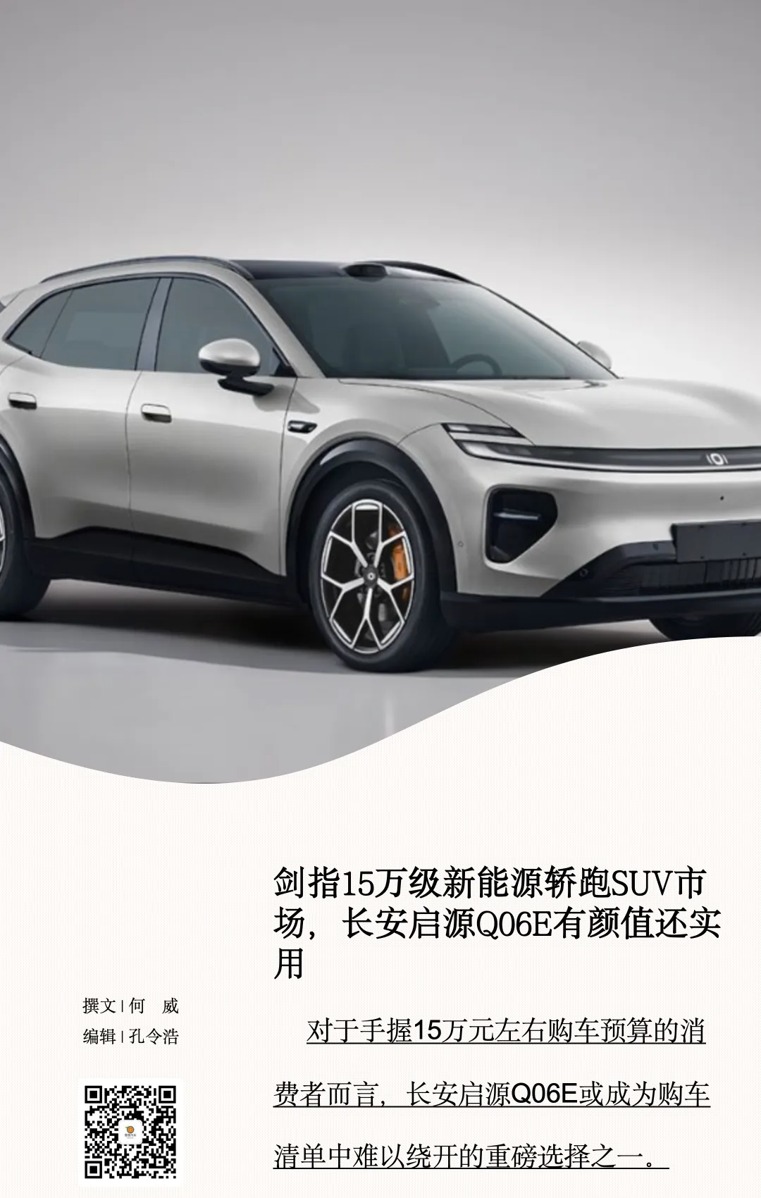点评:如果以启源A06的定位作为基准,长安启源Q06E预计将主攻15万元级新能源SUV市场。高颜值的轿跑身姿、越级的舒适与科技配置、激光雷达赋能的高阶智驾、高得房率的五座大空间,以及增程与纯电并行的双动力选择,这些硬核产品力的叠加,无疑让长安启源Q06E给出了一份“既有颜值又超具实用性”的差异化答卷。对于手握15万元左右购车预算的消费者而言,长安启源Q06E或成为购车清单中难以绕开的重磅选择之一。