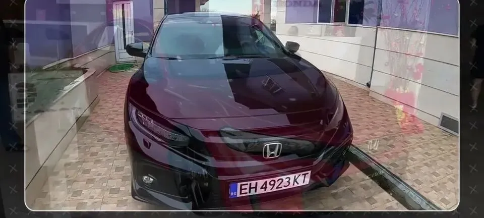 红色本田思域展车侧前方静态全景