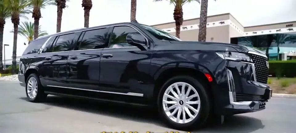 凯迪拉克凯雷德长轴版侧面特写,车身长度超过5.7米。
