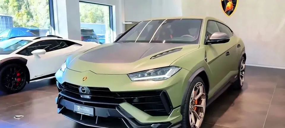 兰博基尼Urus磨砂绿外观展示,贴地超跑姿态十足。