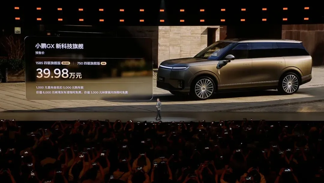 4月15日,小鹏正式亮相全新全尺寸旗舰SUV——小鹏GX,并宣布预售价格39.98万元。纯电+超级增程双版本同步推出,纯电续航最高750km,增程综合续航直接拉到1585km。